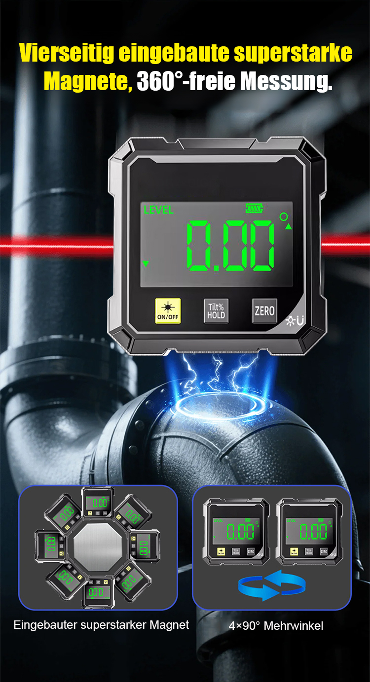 【Wasserwaage + Winkelmesser + Positionierer】Starkes Magnet-Digitalanzeige-Neigungsmesser-Winkelmessgerät