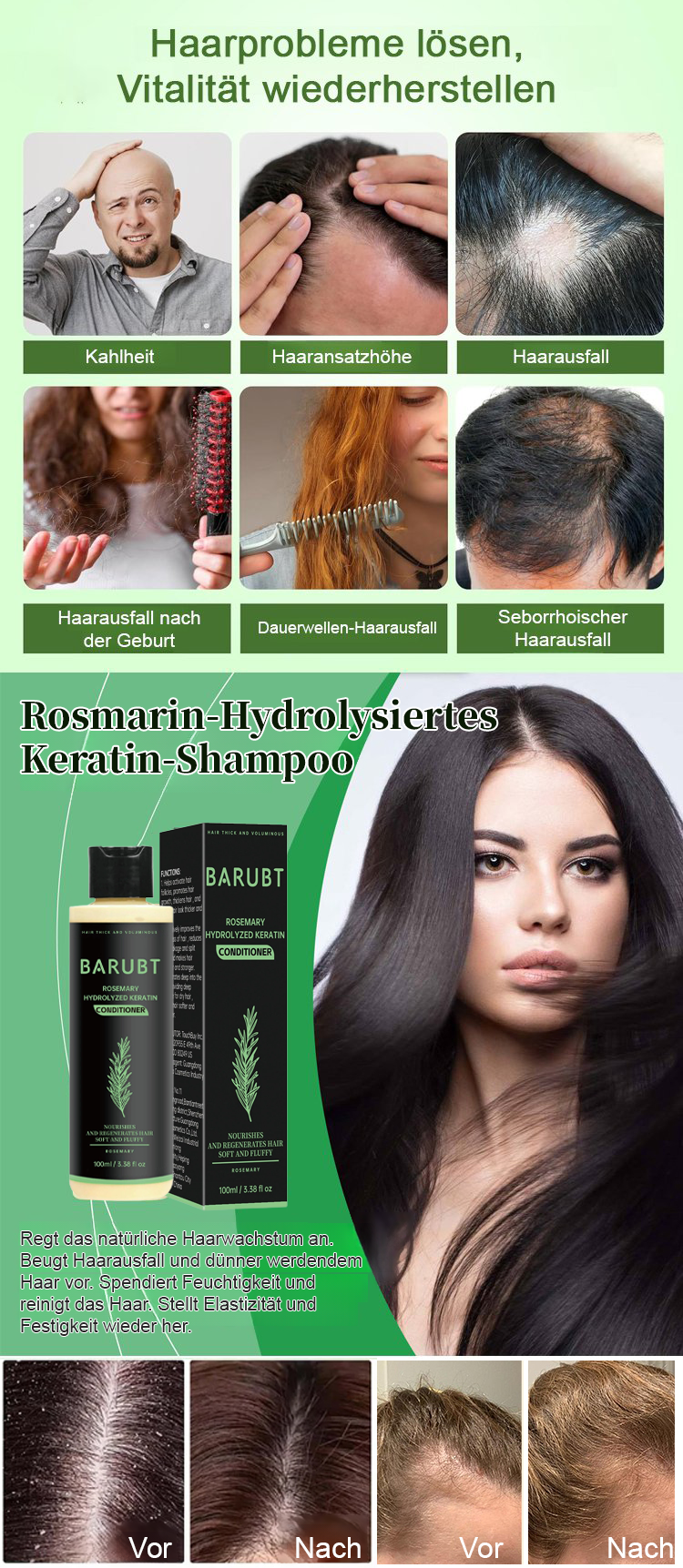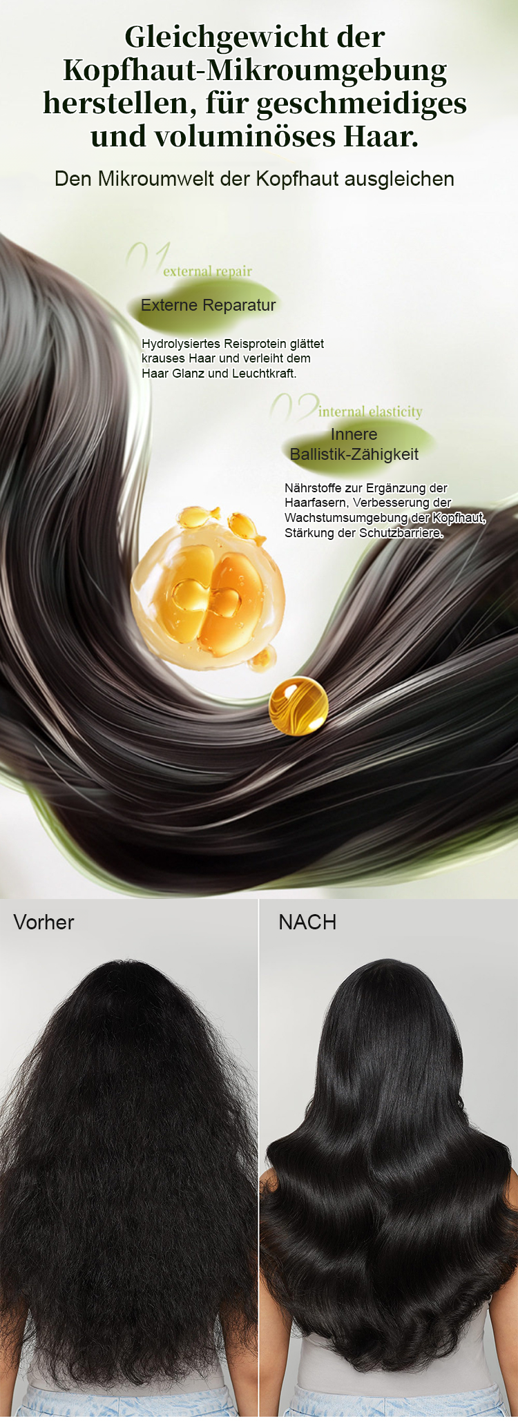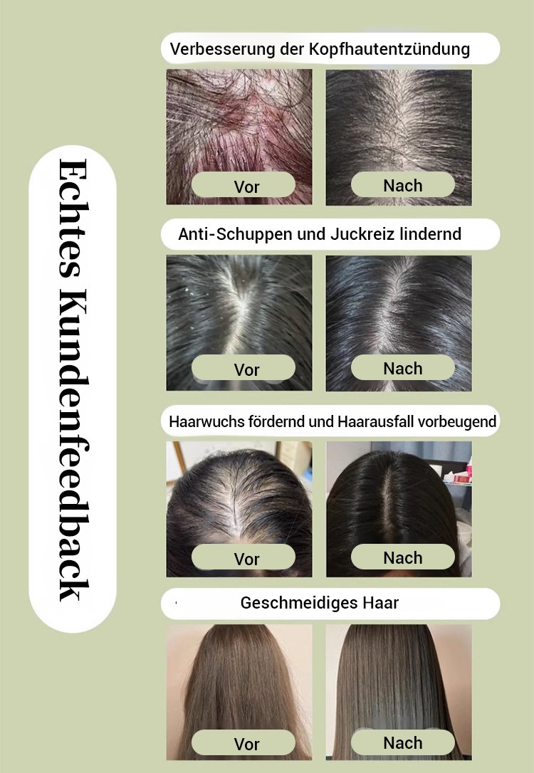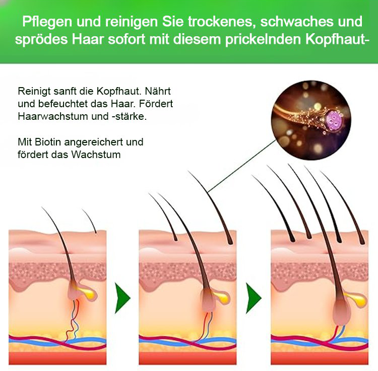 🌿Aktiviert ruhende Haarfollikel, versorgt die Haarwurzeln mit Nährstoffen und fördert das Haarwachstum.